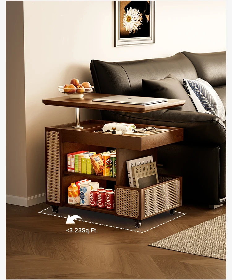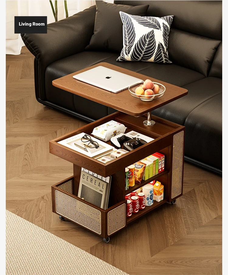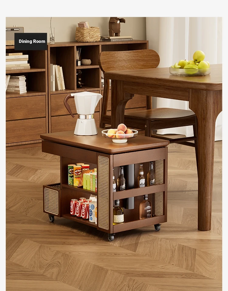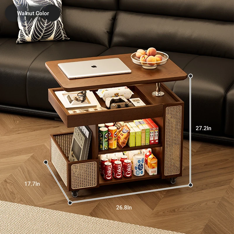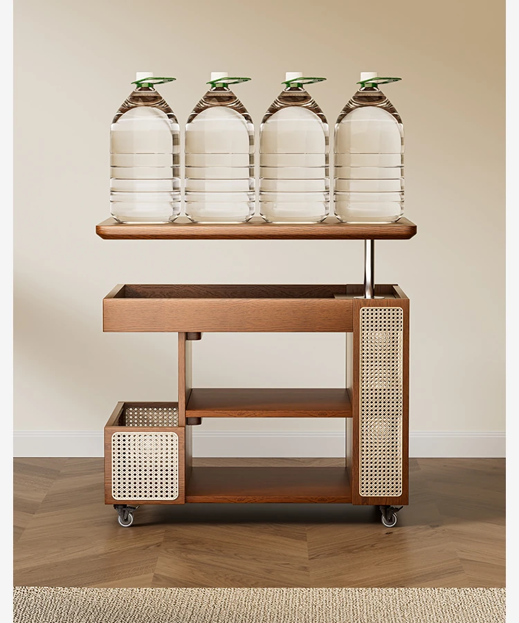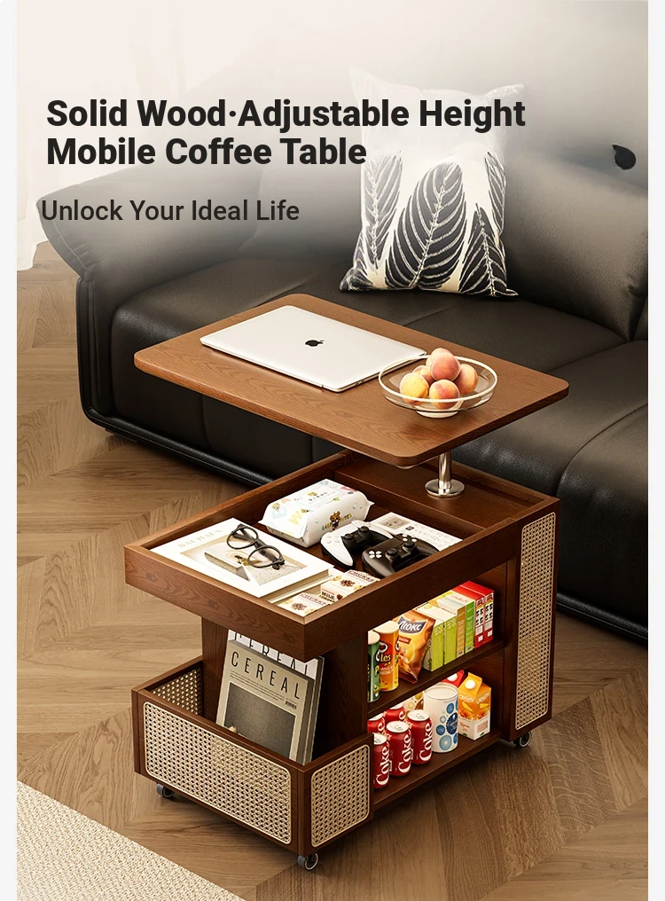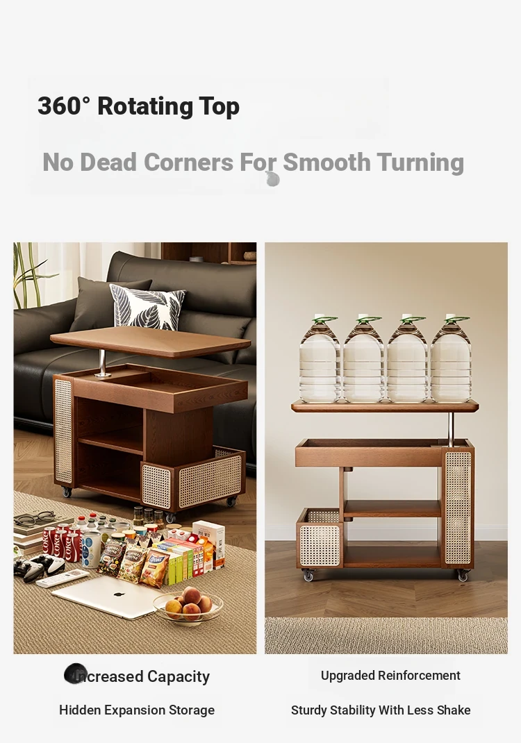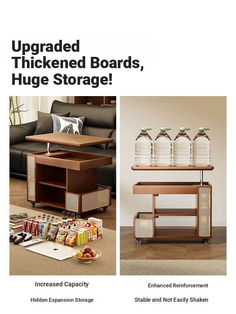 Multi-Functional Solid Wood Rolling Cart - Adjustable Height Snack Storage Table for Home, Living Room Side Cabinet, and Coffee Table - Perfect for Organizing and Entertaining!
