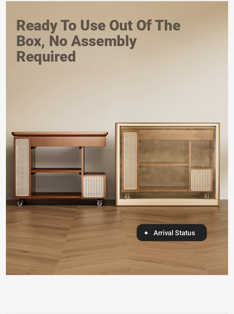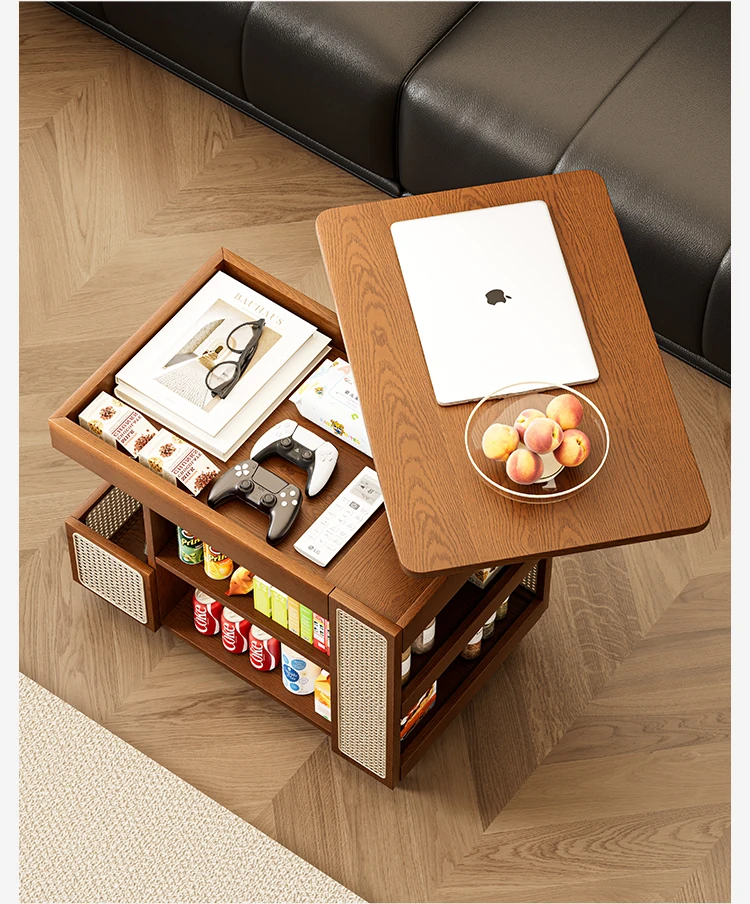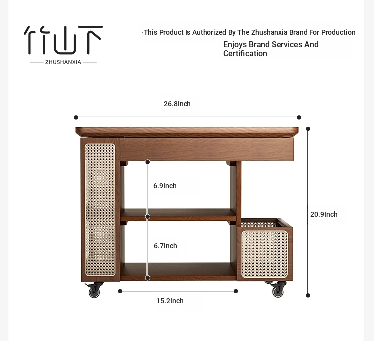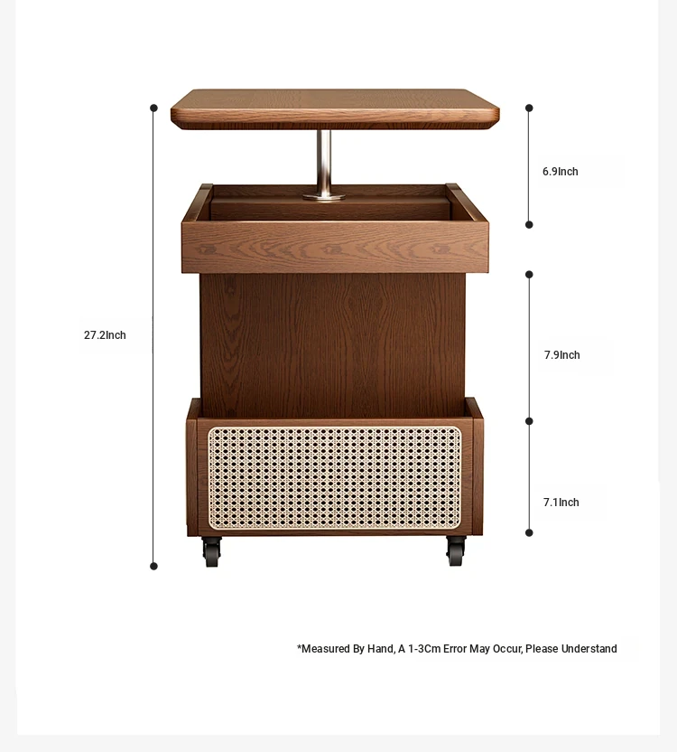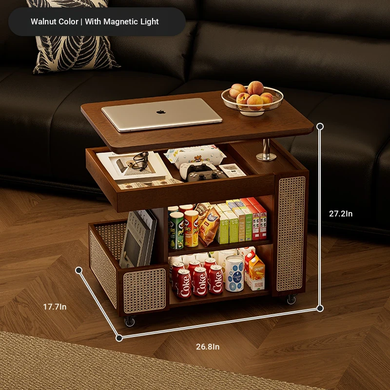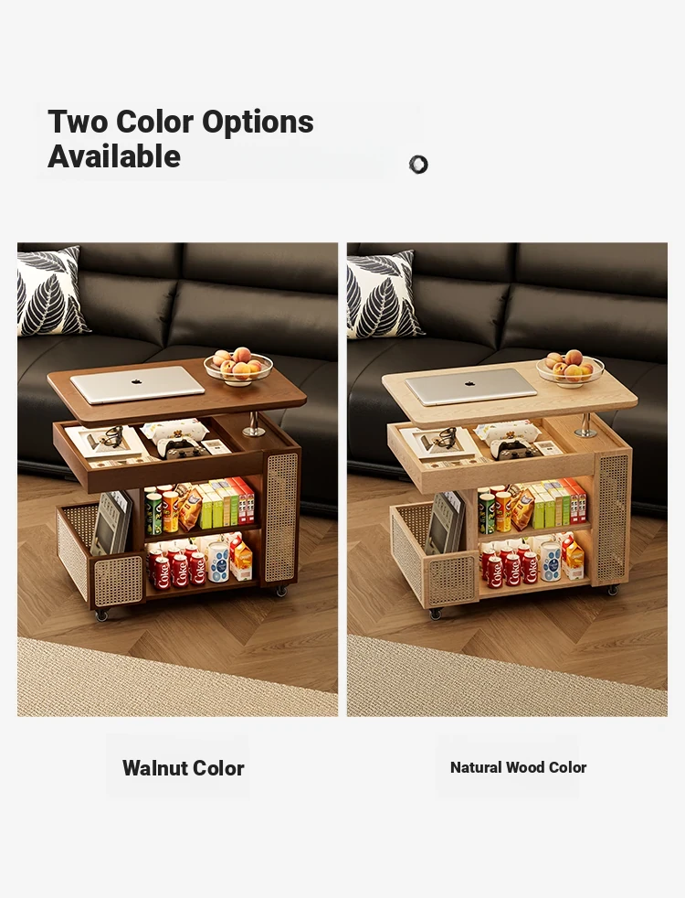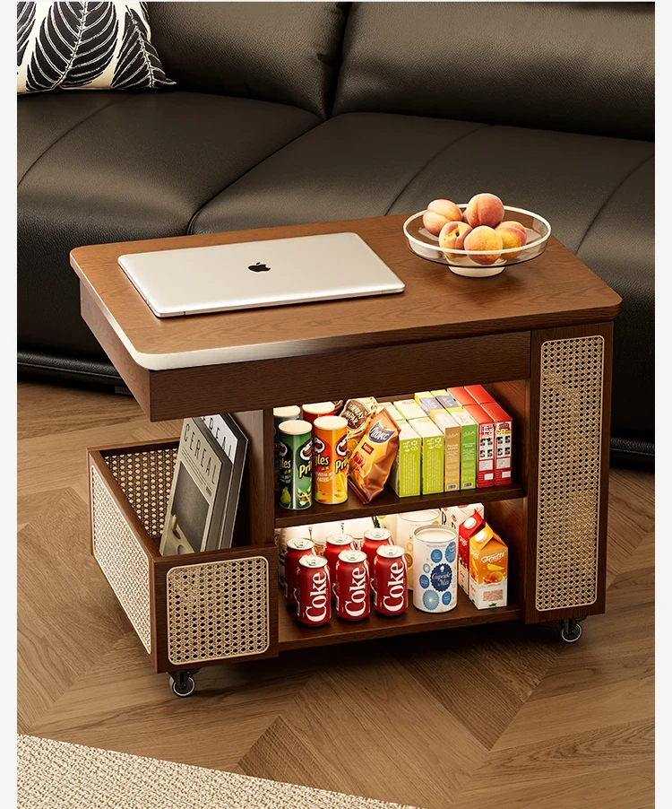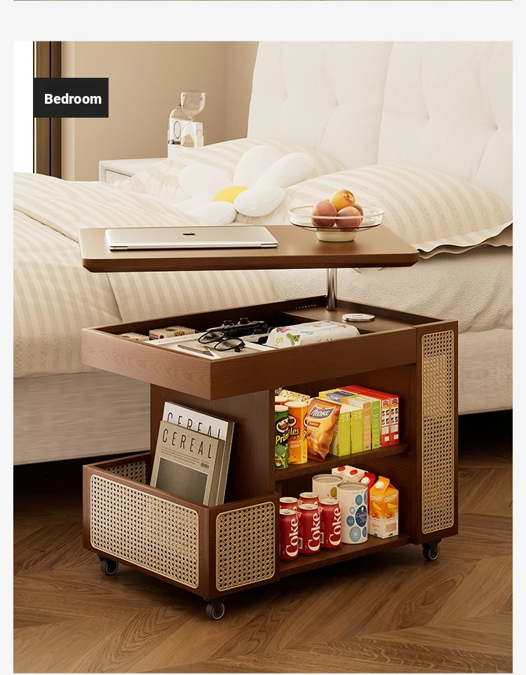 Multi-Functional Solid Wood Rolling Cart - Adjustable Height Snack Storage Table for Home, Living Room Side Cabinet, and Coffee Table - Perfect for Organizing and Entertaining!