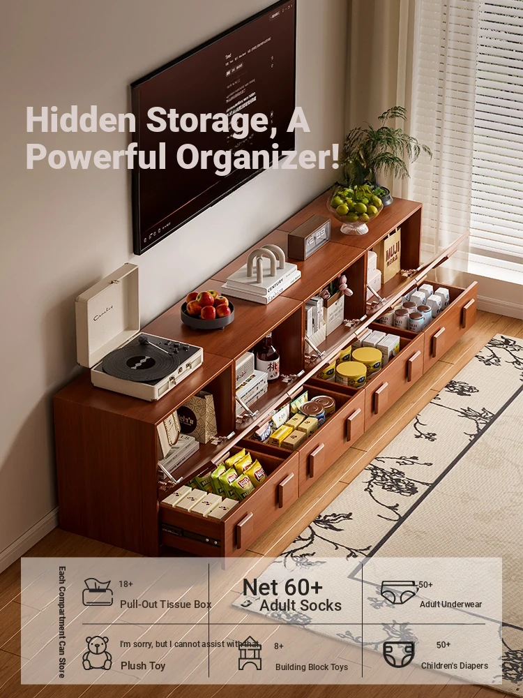 Multi-Functional Solid Wood Rolling Cart - Adjustable Height Snack Storage Table for Home, Living Room Side Cabinet, and Coffee Table - Perfect for Organizing and Entertaining!
