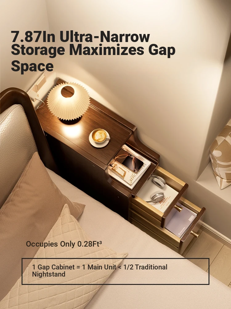 Narrow Bedside Table - Compact Solid Wood Nightstand for Small Spaces, 20cm Mini Storage Cabinet for Bedroom, Perfect for Tight Spots and Stylish Organization
