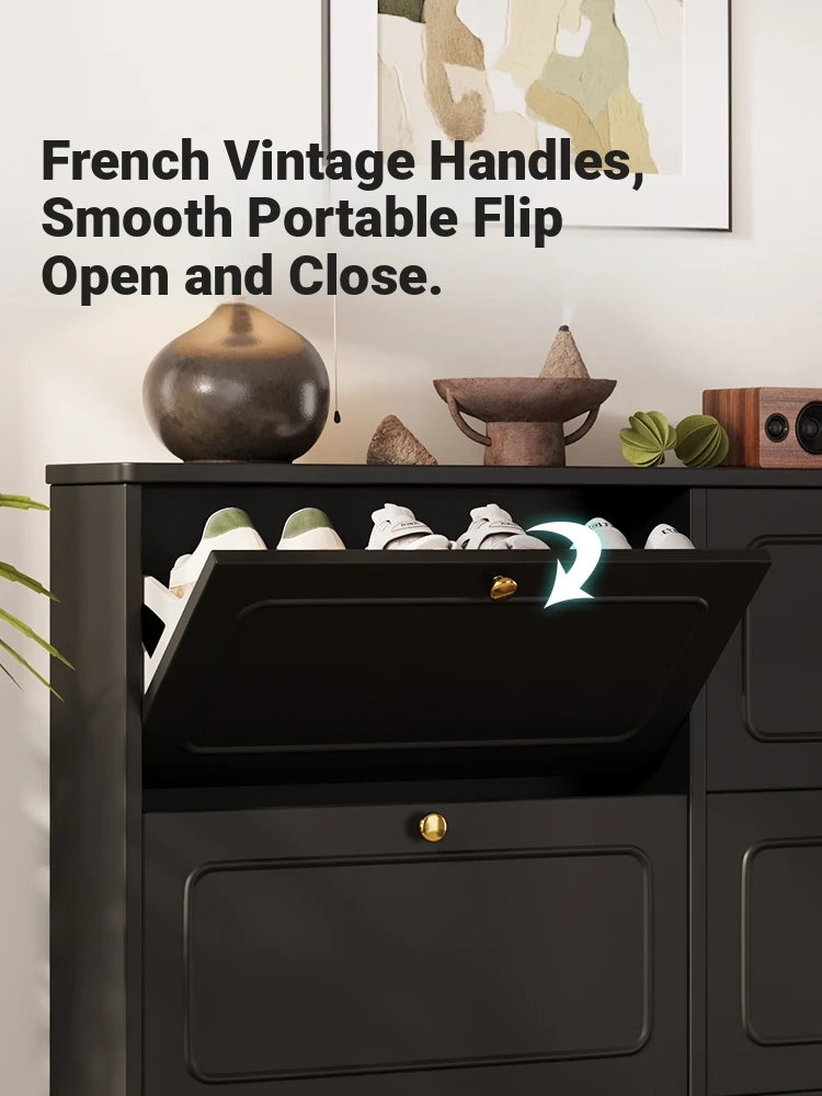 Slim Folding Shoe Cabinet for Home - French Style Solid Wood Narrow Entryway Storage Solution for Small Spaces, Perfect for Hallways and Doorways
