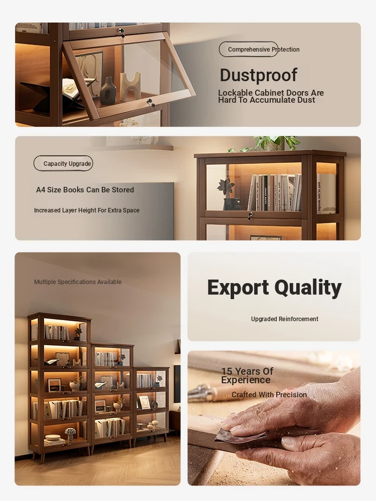 Solid Wood Bookshelf - Floor-standing Storage Rack for Kids and Students, Home Bookcase with Dustproof Glass Doors, Perfect for Room Display and Organization.