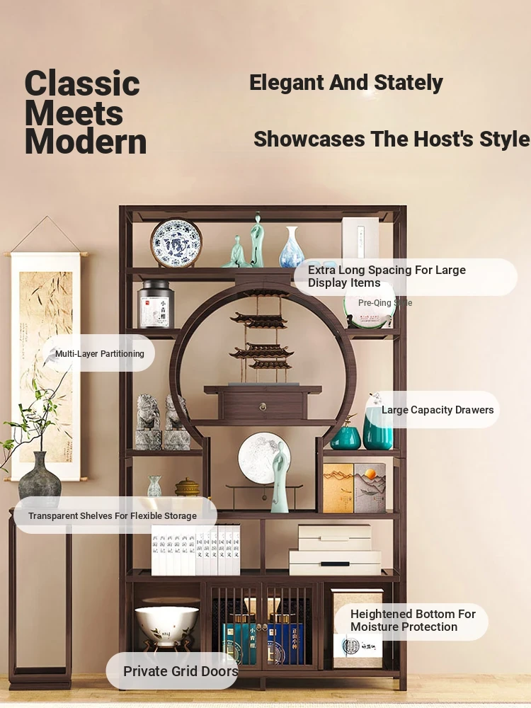 Elegant Solid Wood Chinese Antique Tea Cabinet - Versatile Display Shelf for Tea, Décor, and Storage in Your Tea Room. Perfect for Creating a Cozy Atmosphere!