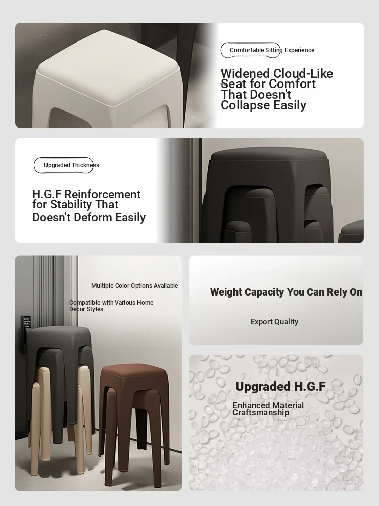 Stackable Modern Simple Thick Plastic Dining Chair for Home, Luxurious Soft Cushioned Square Stool - Perfect for Extra Seating!
