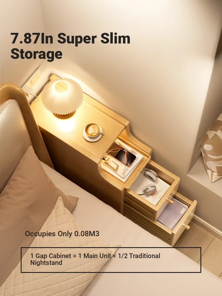 "2025 Trending Slim Solid Wood Nightstand - Ultra-Narrow Bedside Storage Cabinet for Home Bedrooms, Vintage Style, Perfect for Tight Spaces"