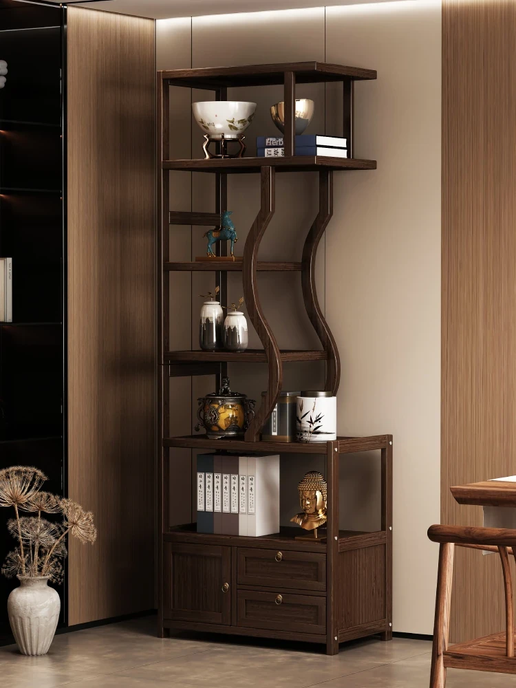Small Solid Wood Display Cabinet for Tea Accessories - New Chinese Style Tea Room Modern Minimalist Multi-Function Storage Rack and Decorative Shelf