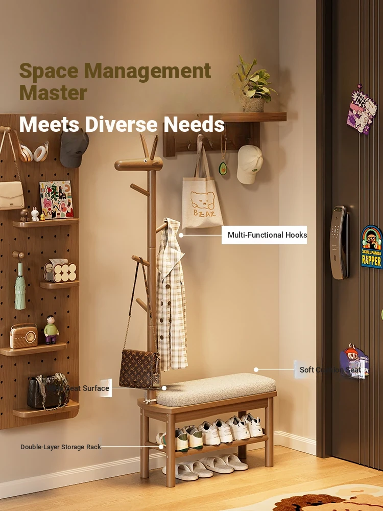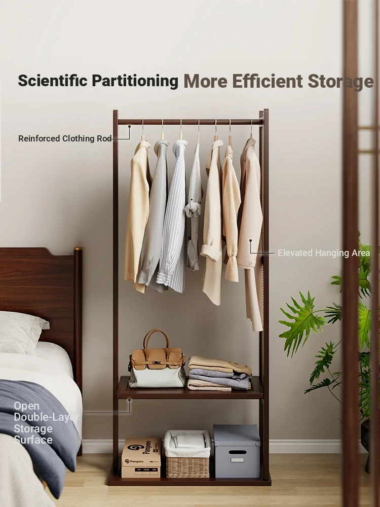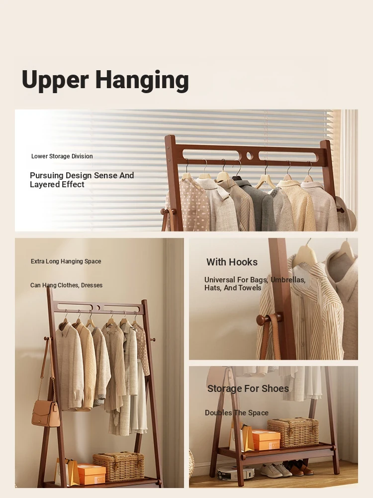 Stylish Solid Wood Free-Standing Clothes Rack for Bedroom, Living Room, and Entryway – Space-Saving Corner Coat Stand and Storage Solution for Your Home