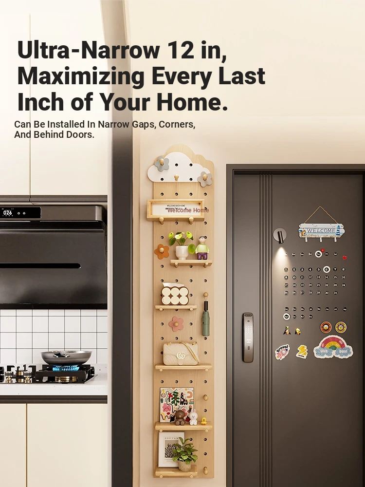 Wooden Pegboard Storage Rack for Entryway - Vertical Wall Display Organizer for Home, Perfect for Hallway and Doorway, Ideal for Stylish and Functional Home Décor