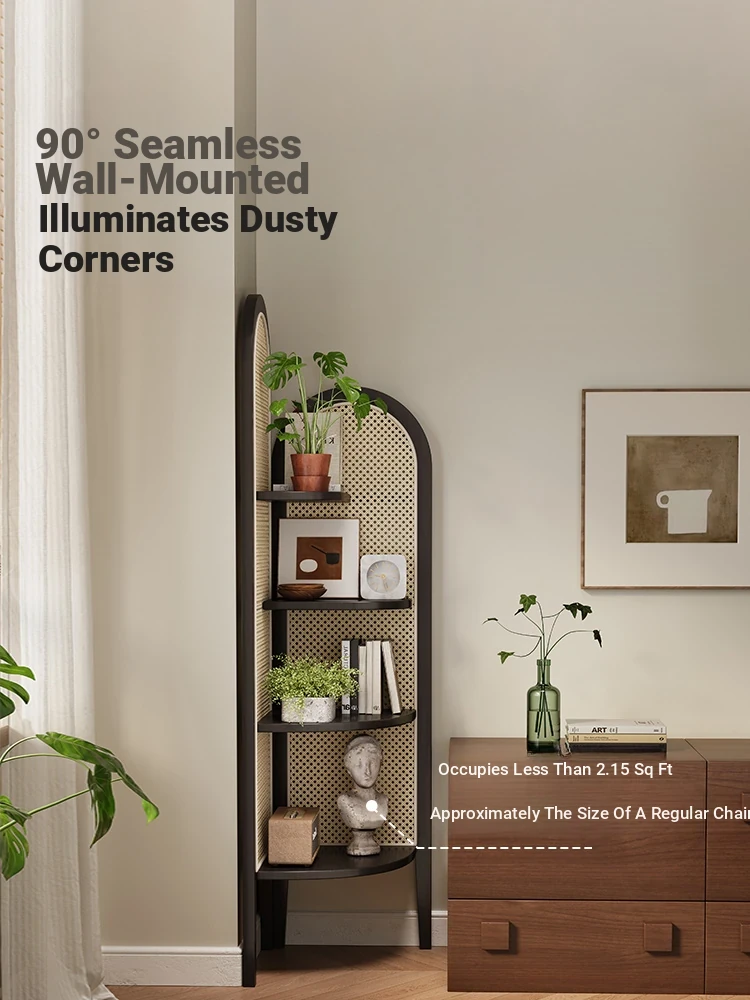 Vintage Rattan Corner Shelf - Space-Saving Narrow Bookshelf for Wall, Retro Corner Cabinet for Living Room, Elegant Corner Storage Solution