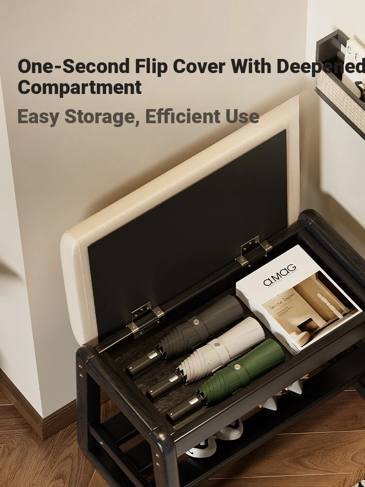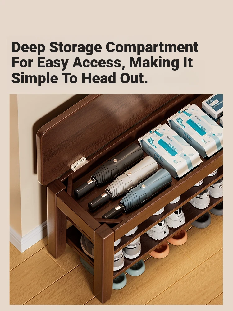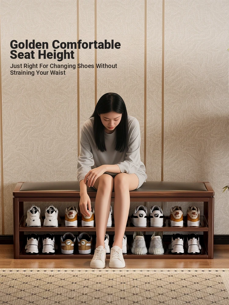 Solid Wood Shoe Change Bench - Stylish Entryway Storage with Soft Cushion, Multi-Layer Shoe Rack, Perfect for Home and Entry Door Use, Comfortable Seating for Easy Shoe Changes.