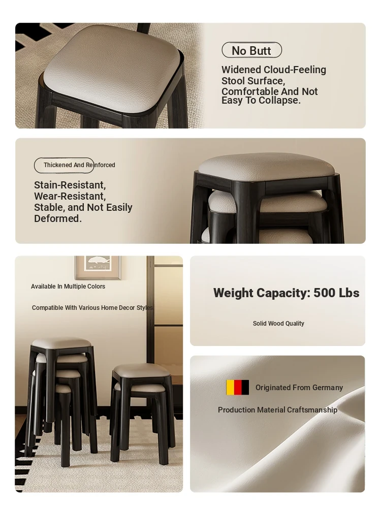 Solid Wood Stacking Stool - Black Upholstered Round Bench for Home Use, Versatile Low Chair for Living Room, Dining Area, and Stylish Seating Solution