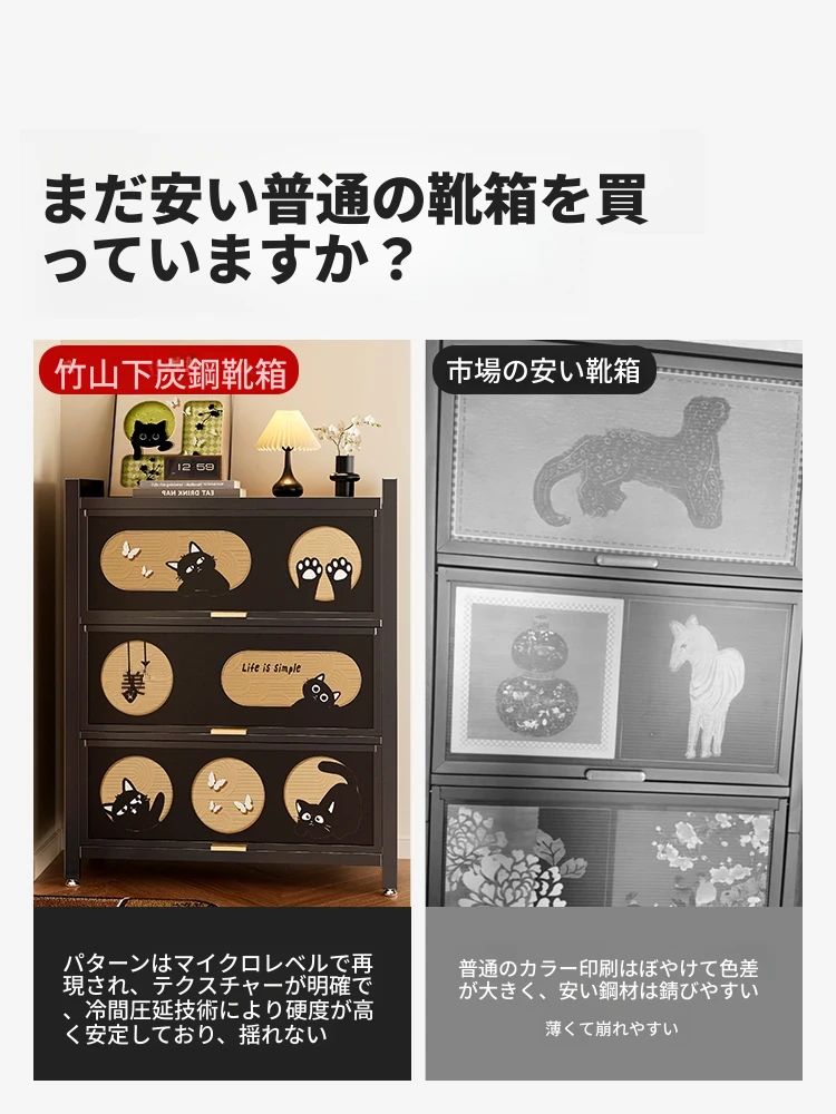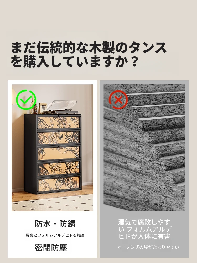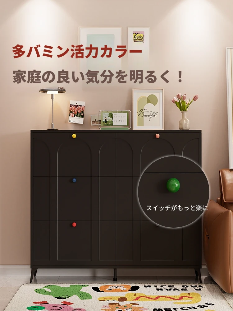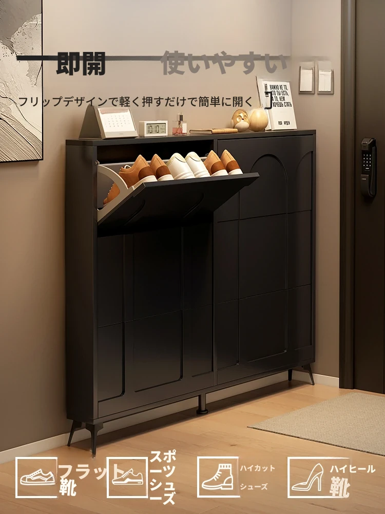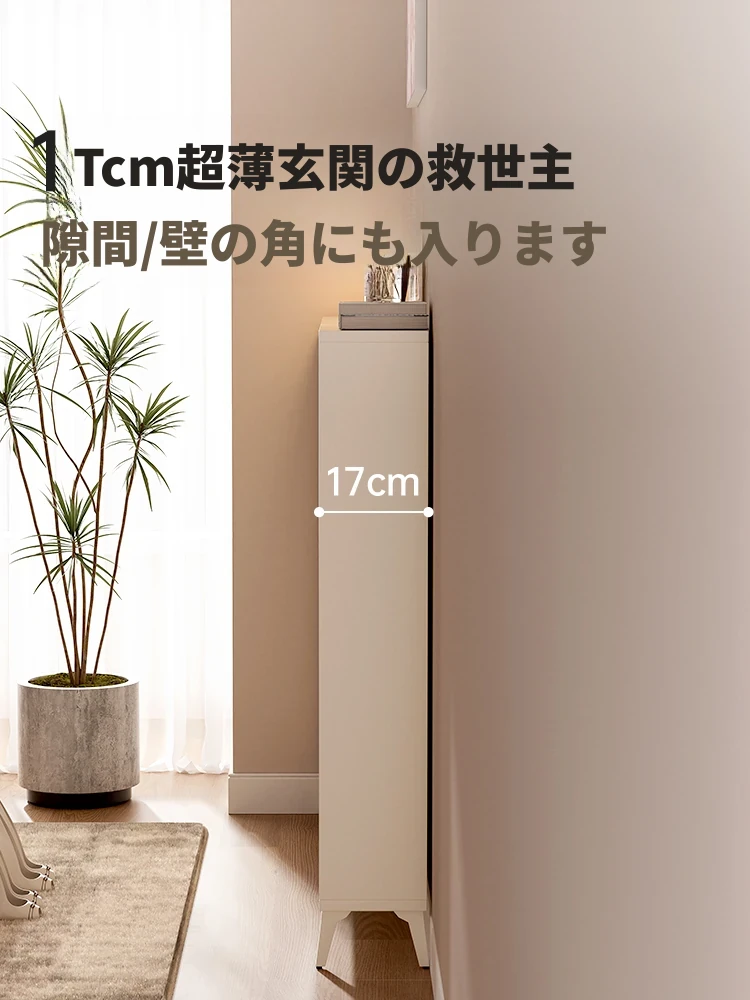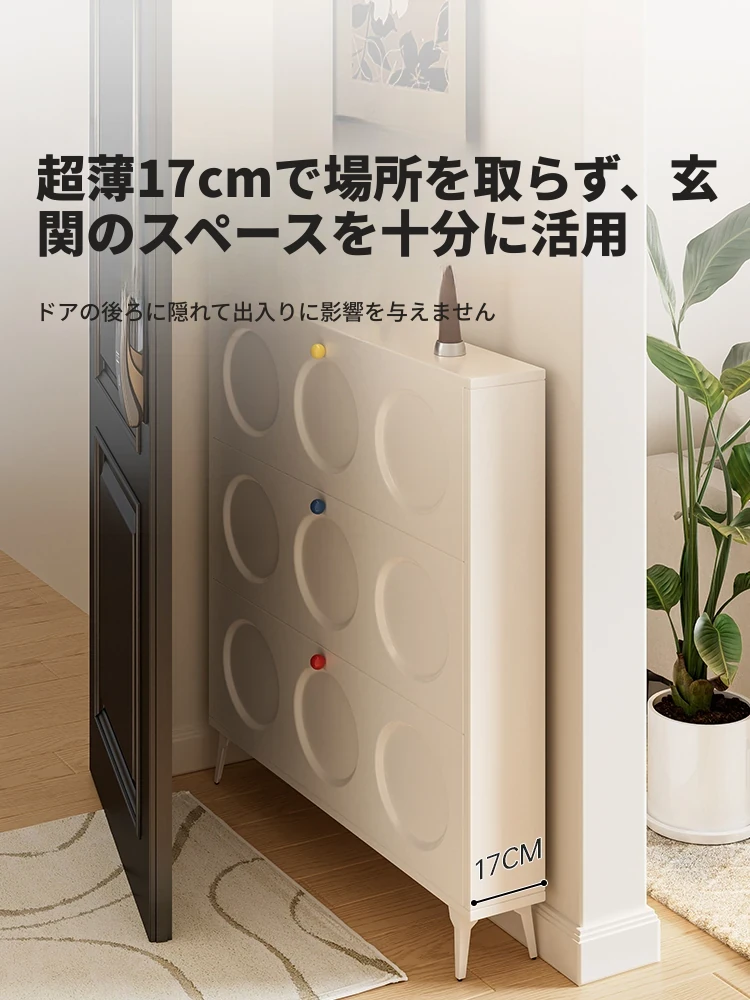 超薄シューズキャビネット - スリムなデザインで玄関をスッキリ整理!多層構造の防塵機能付き、壁にぴったりフィットする収納力抜群の靴箱です。おしゃれな玄関を演出し、入ってすぐのスペースを有効活用!