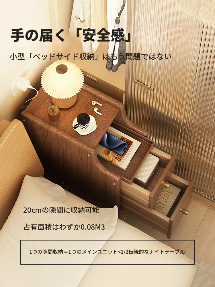 クリーム風の無垢材ナイトテーブル、超スリムデザイン!2025年のトレンドを先取りした小型ベッドサイド収納キャビネット。狭いスペースにもぴったりフィットし、機能性とスタイルを両立!