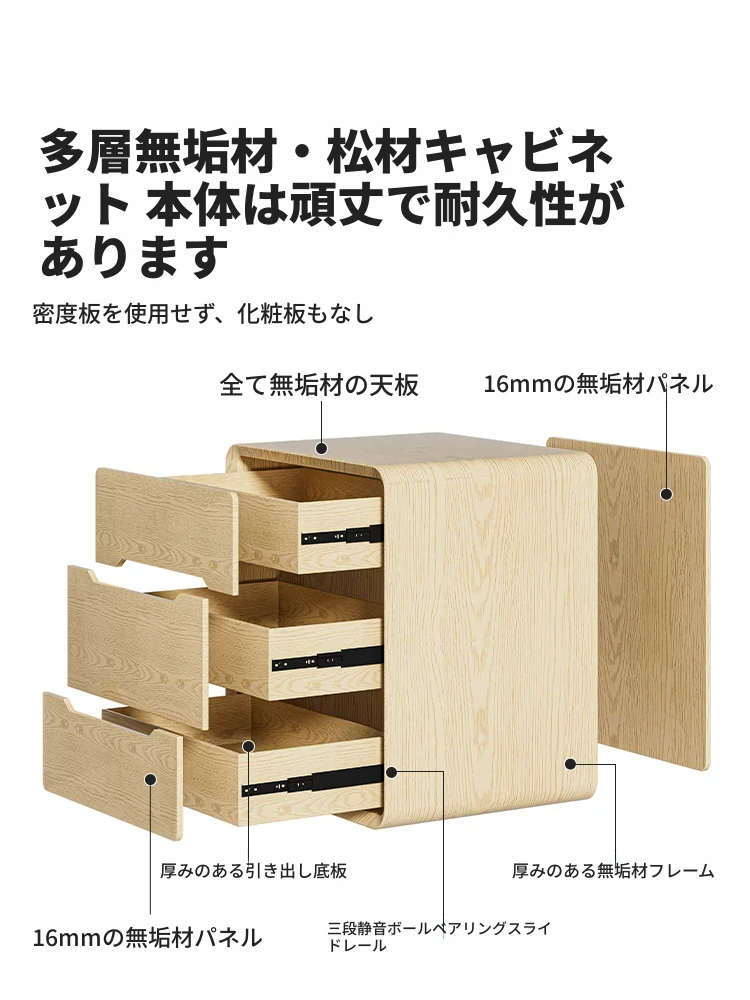 簡単設置!全木製クリーム風ベッドサイドテーブル - シンプルでモダンなデザイン、収納力抜群の小型キャビネット。おしゃれな寝室にぴったりのアイテムです!