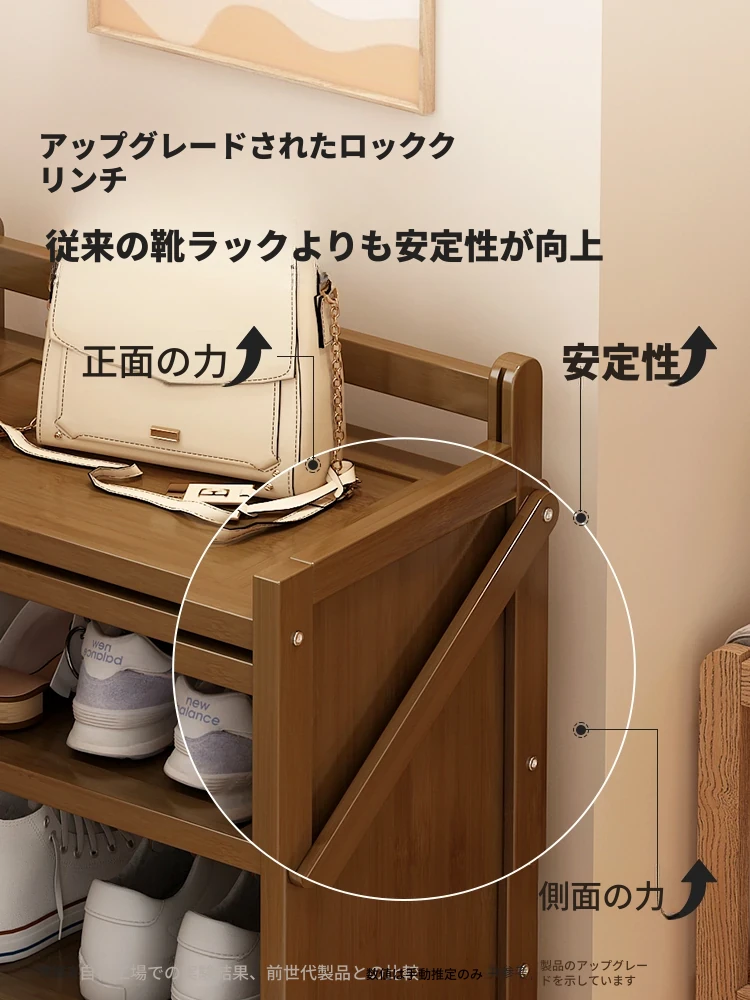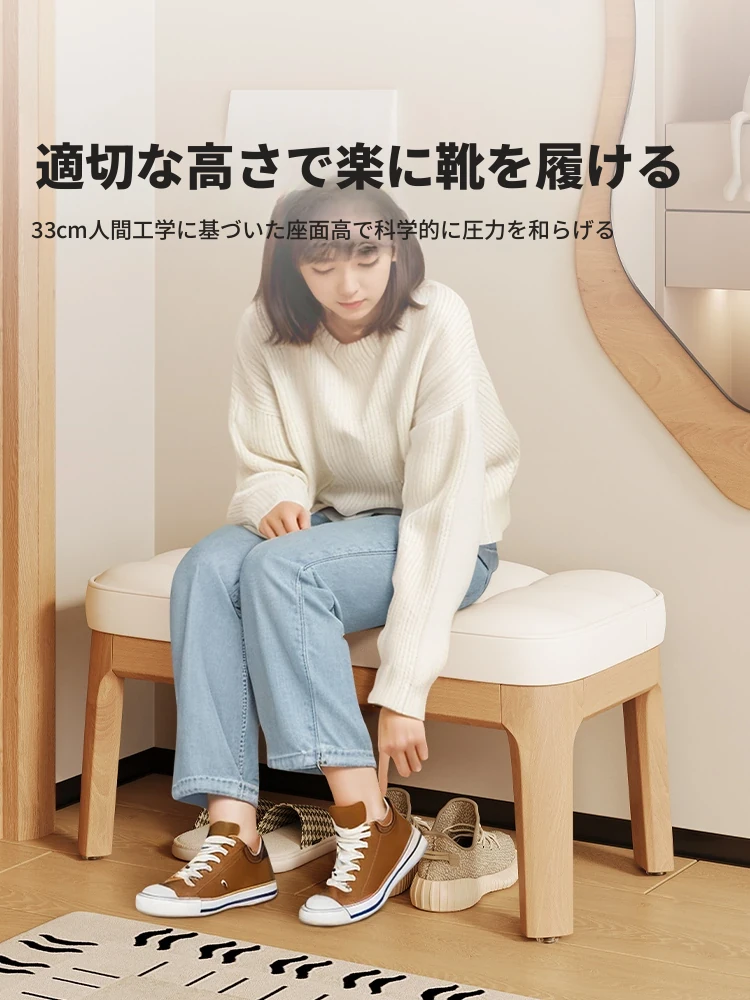 玄関用省スペーススツール!実用的な天然木製シューズラック一体型ベンチ。狭い玄関でも使えるコンパクトデザインで、靴を履くのが楽に!おしゃれで機能的、家族全員にぴったりのアイテムです。