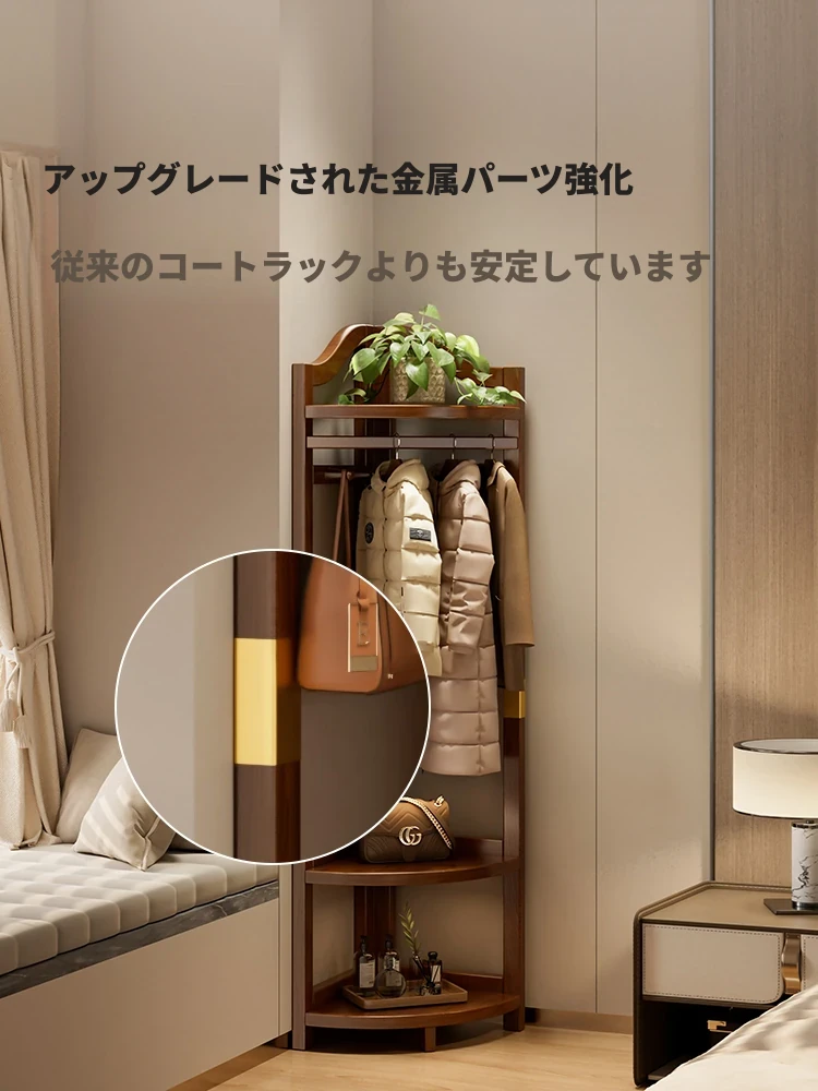 隅にぴったり!省スペースのスタンドコートハンガー - 木製の角型衣類掛け、寝室やリビングに最適!おしゃれで機能的なデザインで、あなたの空間をスッキリ整理!