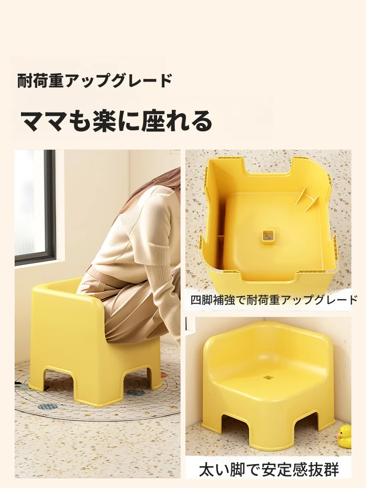 子供用バスチェア - 丈夫で耐久性抜群!厚手プラスチック製の折りたたみ可能な低い椅子。バスルームやトイレに最適なスペースセーバー!安心してお子様をお風呂に入れられます。