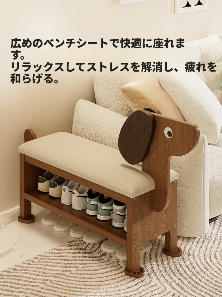 かわいいデザインの犬用シューズベンチ!高級感あふれる無垢材使用で、玄関をおしゃれに演出。お家の入り口で座れる便利な一体型シューズキャビネットです。おしゃれで機能的なインテリアを手に入れましょう!