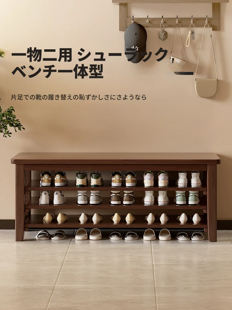 高級感溢れる無垢材の靴置きベンチ - スリムなデザインで玄関にぴったり!座れるだけでなく収納もできる、シンプルでスタイリッシュなアイテム。狭いスペースでも大活躍!