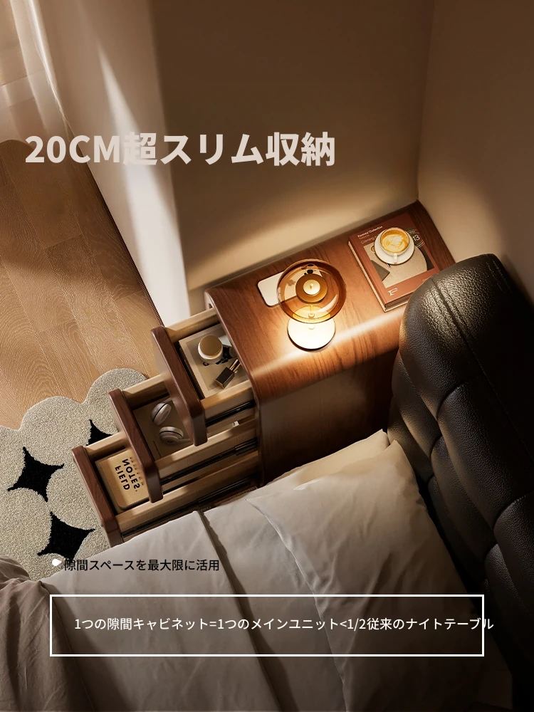 高級感漂う超薄型ミニ木製ナイトテーブル - スタイリッシュな省スペース収納、寝室にぴったりなシンプルデザイン!