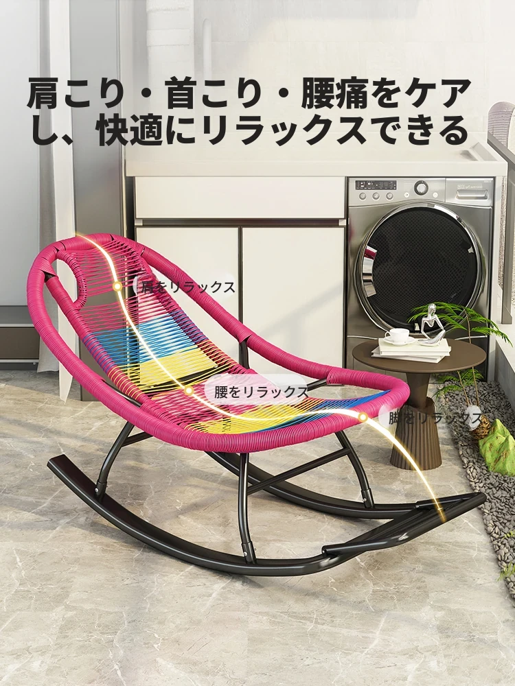 リラックスできる揺れるバルコニー用チェア!大人も快適に昼寝できる新しいデザインの主寝室やリビングにぴったりな籐製の家庭用リクライニングチェア。ゆったりした時間をお楽しみください!