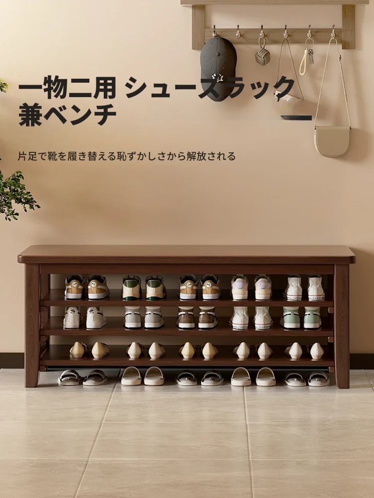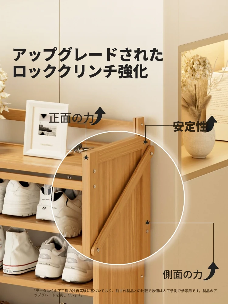 玄関用多層木製シューズラック・スツール一体型!座れるシューズキャビネットで収納力抜群!壁にぴったりフィットする2025年新作、家のスタイルに最適!
