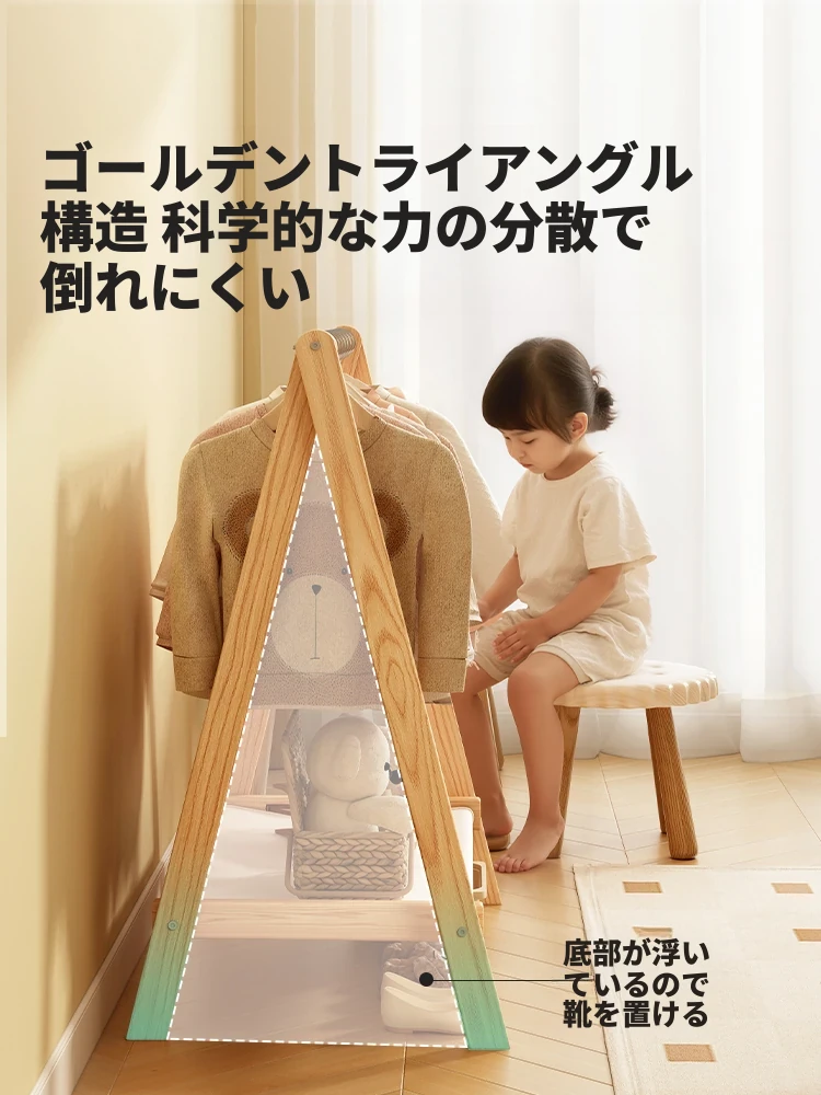 折りたたみ可能な小型実木製の衣類&帽子ラック!子供専用の収納スペースを提供し、スタイリッシュに整頓。立てて使える便利なデザインで、部屋をスッキリと美しく保ちます。