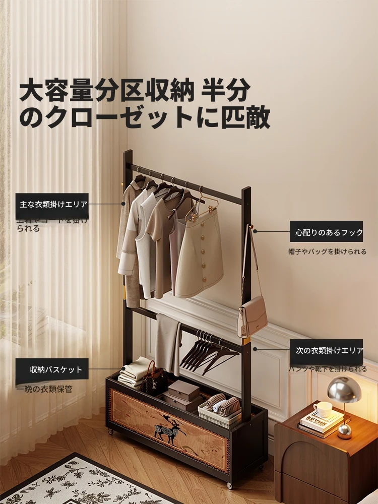 2025年新款!省空间のスタイリッシュなベッドルーム用ハンガーラック&ランドリーバスケット一体型、移動も楽々!おしゃれな衣類収納で、整理整頓も簡単!