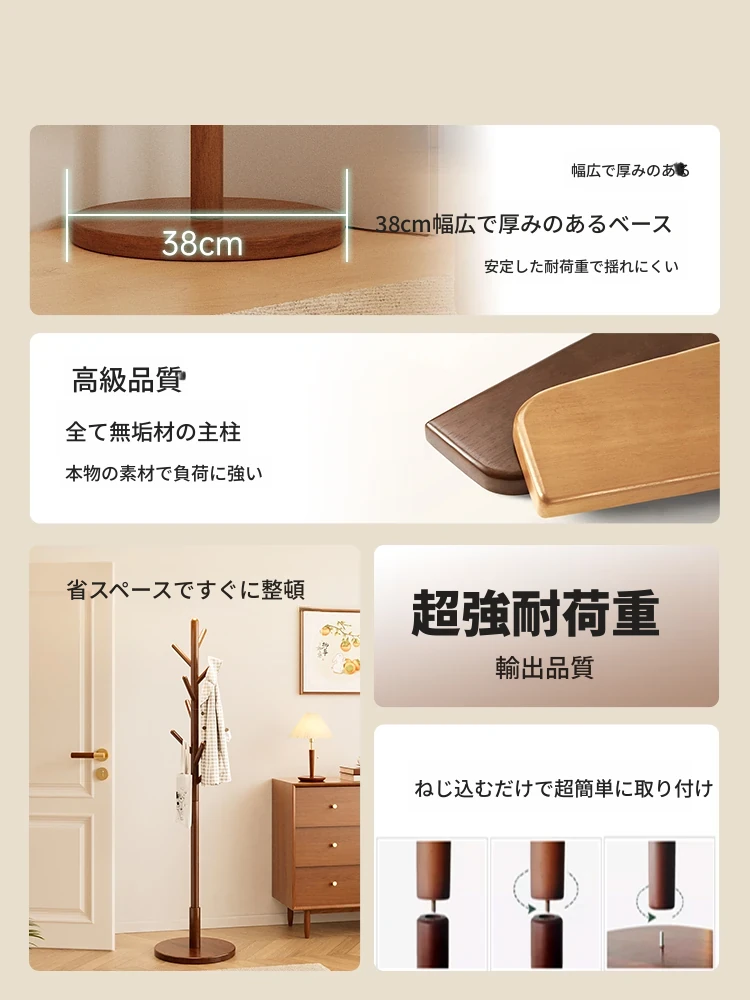 新作!省スペースのスタイリッシュな木製スタンドコートハンガー - 寝室やベッドサイドに最適、衣服をおしゃれに掛けられます!
