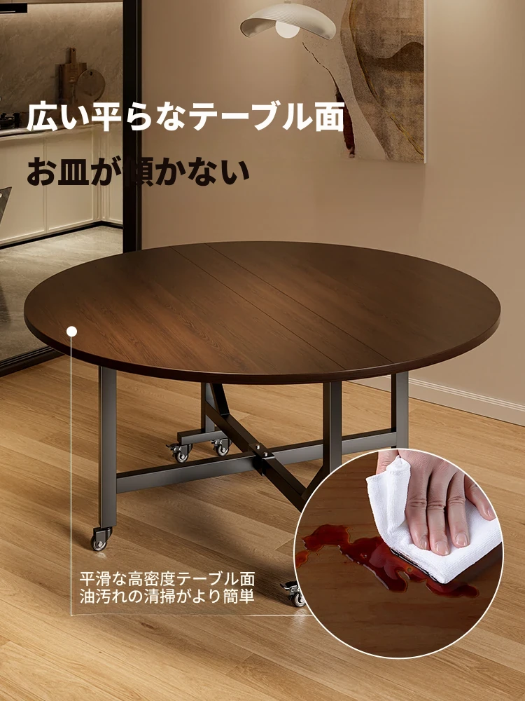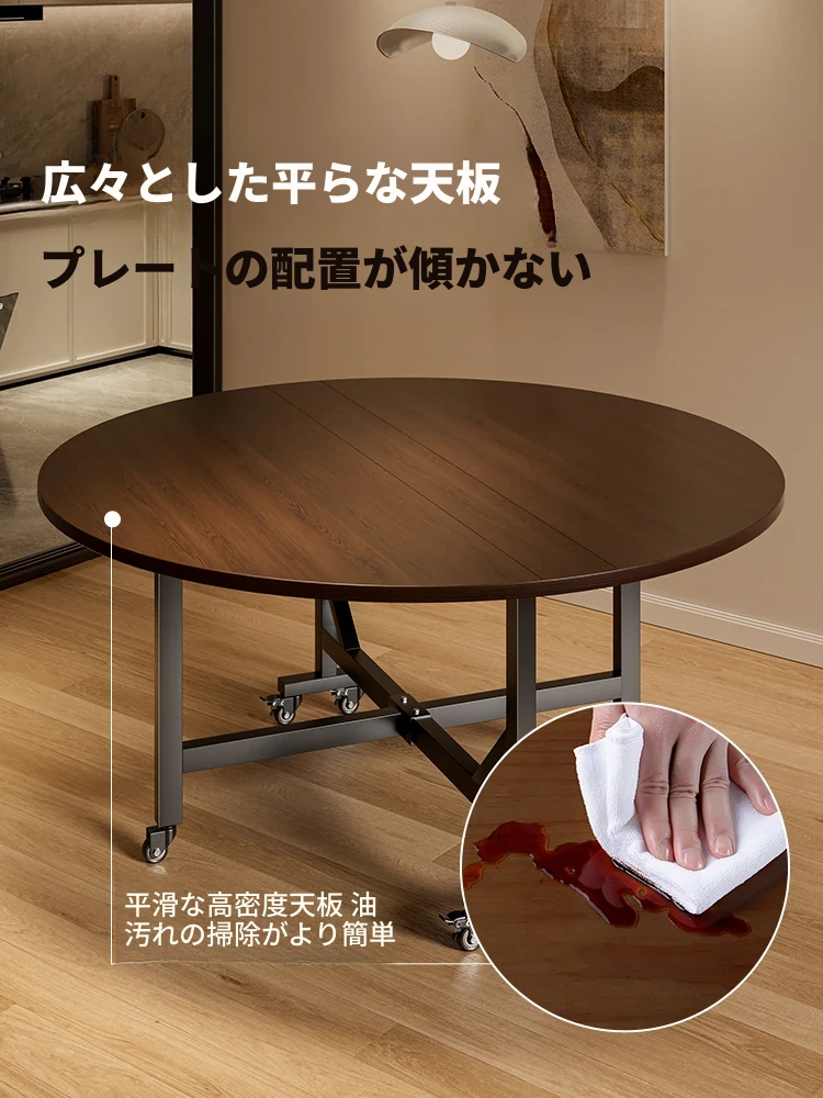 折りたたみ式移動可能なダイニングテーブル - 小型住宅に最適!シンプルでスタイリッシュな円形デザインの大きなテーブルで、食事を楽しく!省スペースで使いやすく、家族や友人との団らんにぴったりです。