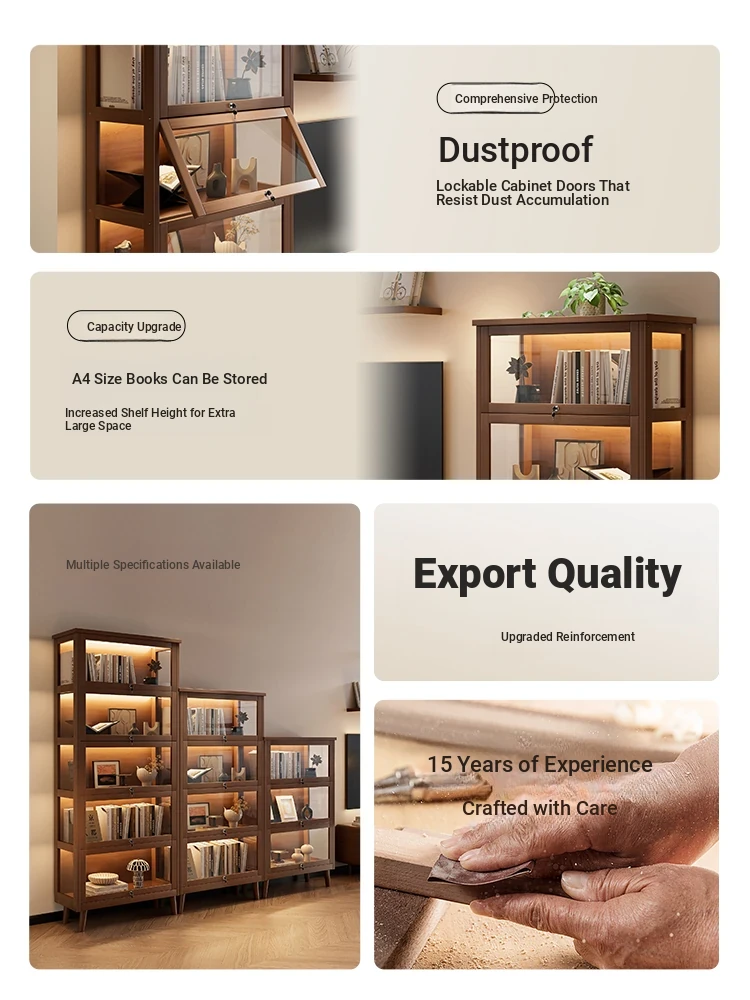 Elegant Solid Wood Display Cabinet - Versatile Glass Shelves for Cosmetics, Books, and Toys - Perfect for Home Living Room and Wine Storage