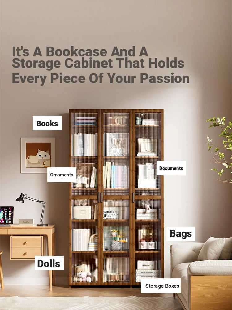 Stylish Wall-Mounted Bookshelf and Storage Cabinet with Glass Doors - Modern Floor-to-Ceiling Display Unit for Living Room and Home Organization, Space-Saving Design