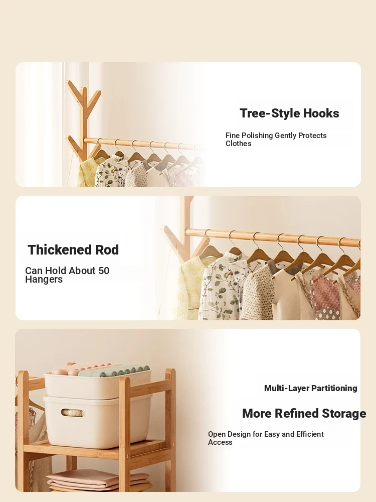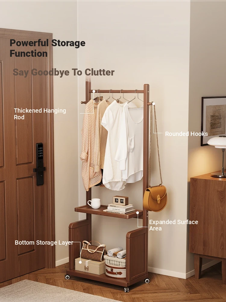 2025 New Wooden Freestanding Clothes Rack - Space-Saving Coat Hanger for Bedroom and Home, Stylish and Functional Garment Organizer