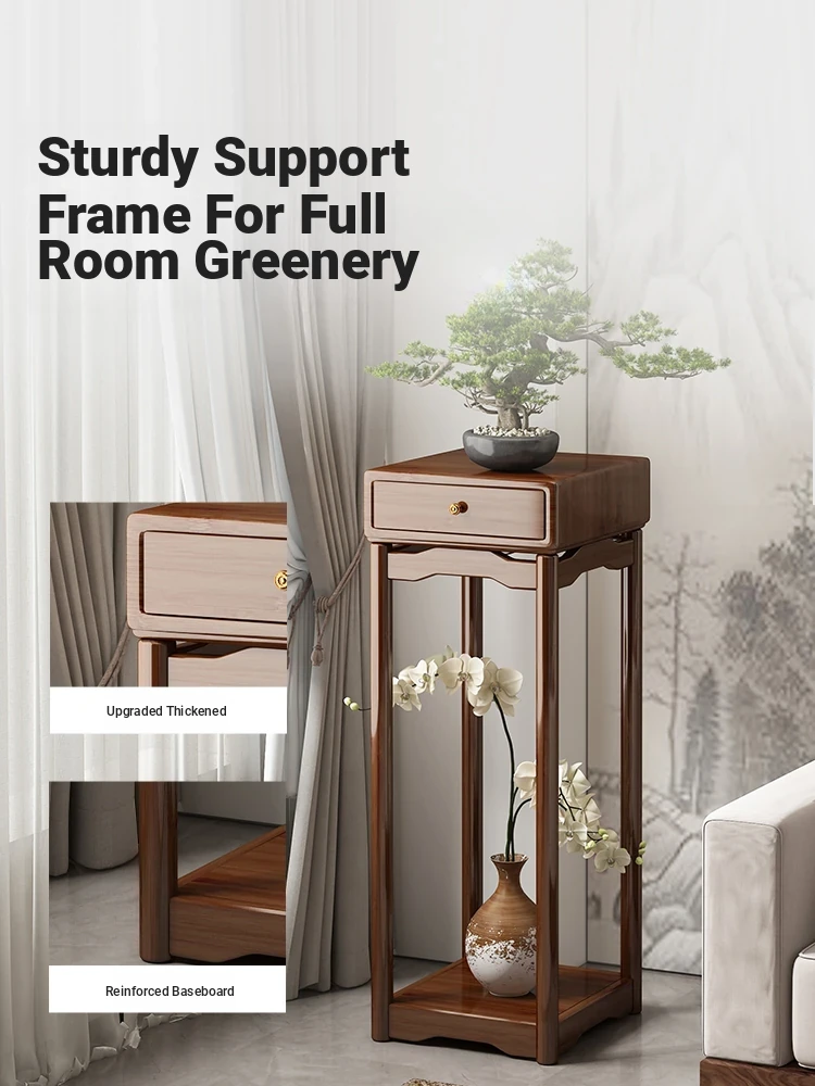 Elegant Solid Wood Floor-Standing Flower Rack - New Chinese Style Plant Stand for Living Room and Balcony, Ideal for Greenery Display, Simple and Chic Design, Perfect for Modern Homes - 2024 New Arrival