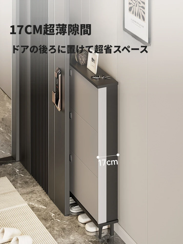2024年新款!超薄デザインの翻斗靴箱 - 家庭用・玄関用に最適!多層大容量で狭いスペースにもぴったりの靴ラック。おしゃれで機能的な収納を実現し、玄関をスッキリ整理!