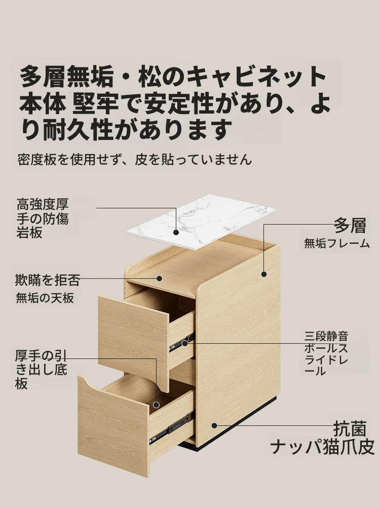 全て天然木製の組み立て不要!高級感あふれる岩板デザインの収納キャビネット。シンプルでモダンな寝室にぴったりのベッドサイドキャビネット。