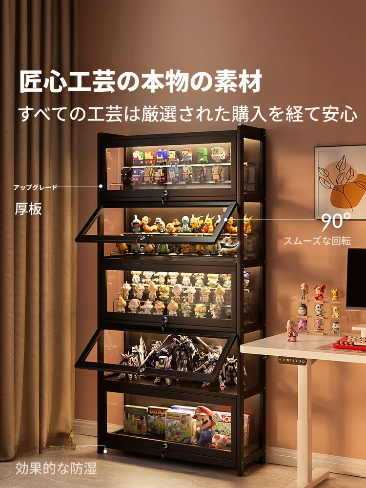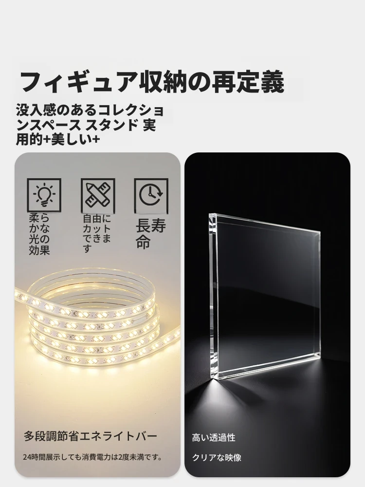 LEDライト付きアクリルフィギュアディスプレイケース - 鍵付き・透明・多層設計でほこりを防ぎ、あなたのコレクションを美しく展示!おもちゃや模型の収納にも最適!
