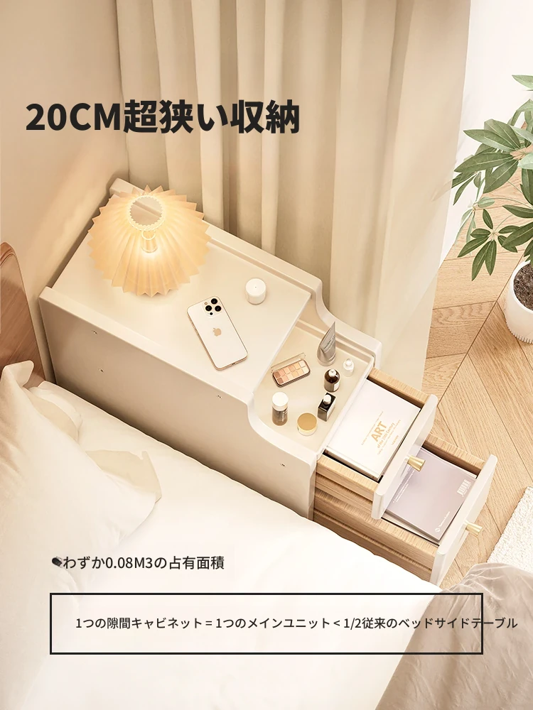超スリム実木ナイトテーブル|ミニサイズのベッドサイド収納キャビネット|狭いスペースにぴったりの主寝室用|機能的でスタイリッシュなデザイン!
