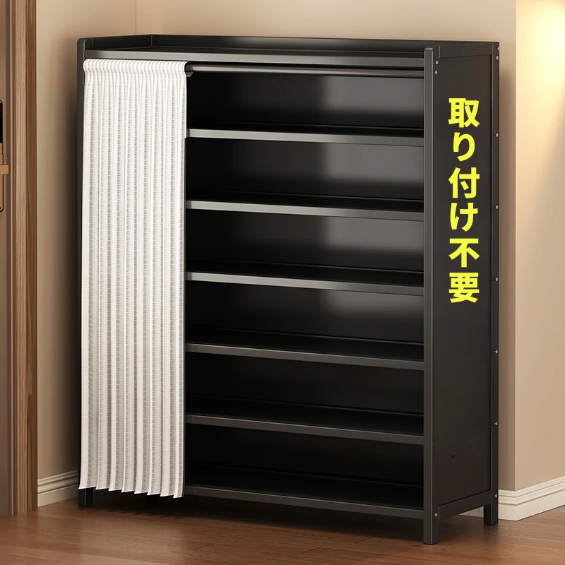 折りたたみ式シューズラック|玄関用・多層・簡易設計|取り付け不要・ホコリを防ぐカーテン付き|室内に最適なスリム収納アイテム!おしゃれで機能的な靴箱で、スッキリ整理整頓!