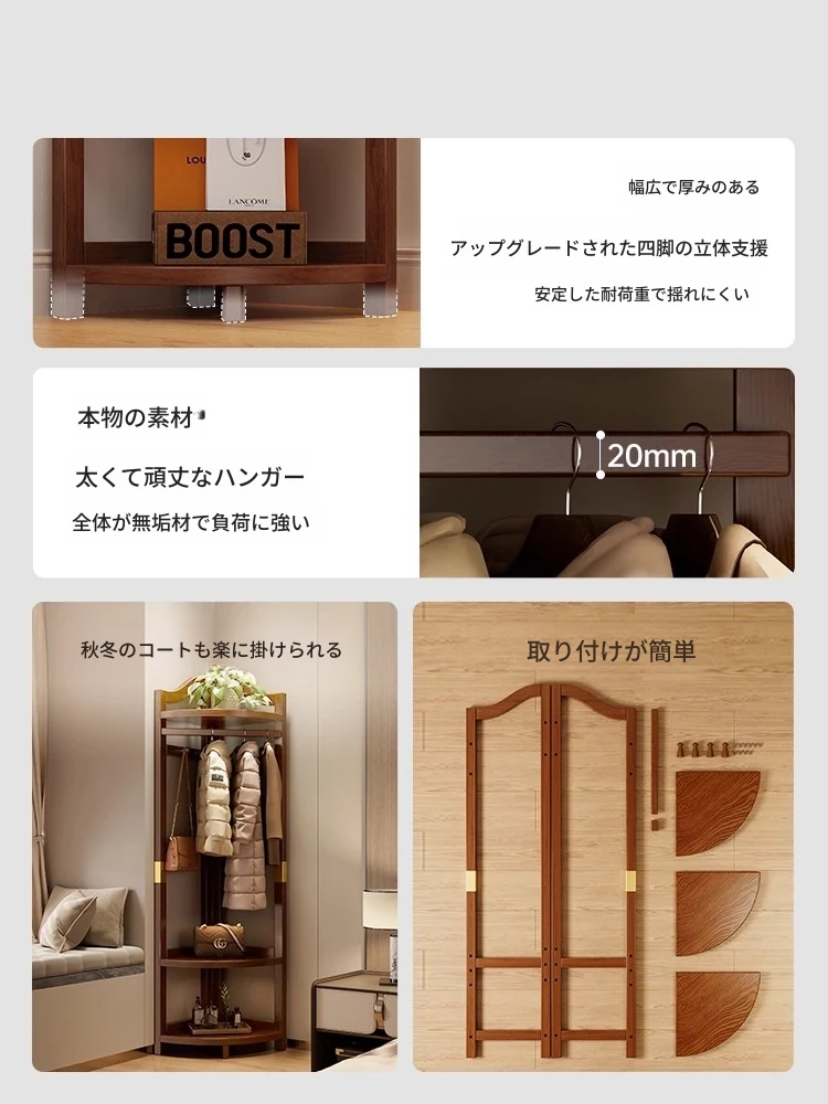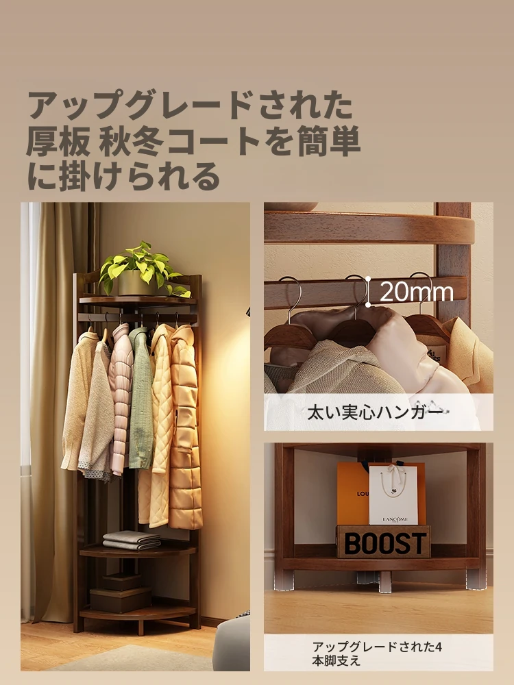 角にぴったりな木製コートラック!寝室での脱ぎ捨てた衣服をスマートに収納。ベッドサイドや壁の隅に最適なデザインで、スペースを無駄にせず、スタイリッシュな収納を実現します。あなたの生活空間をおしゃれに演出!