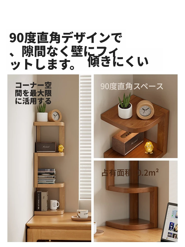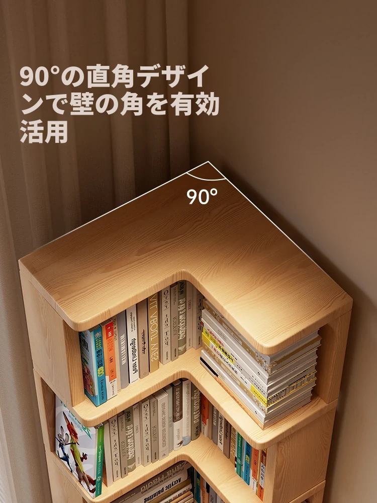 天然木製の多層コーナー書棚 - 学生や家庭に最適なデスク上収納!角にぴったりフィットし、スタイリッシュに収納力アップ。デスク周りをスッキリ整理し、おしゃれな空間を演出します!